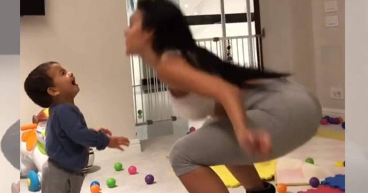 'Mi felicidad, mi familia. Los amo. Mandándole toda nuestra energía a papi y a la Juventus', escribió mientras se ve jugando con uno de sus hijos.