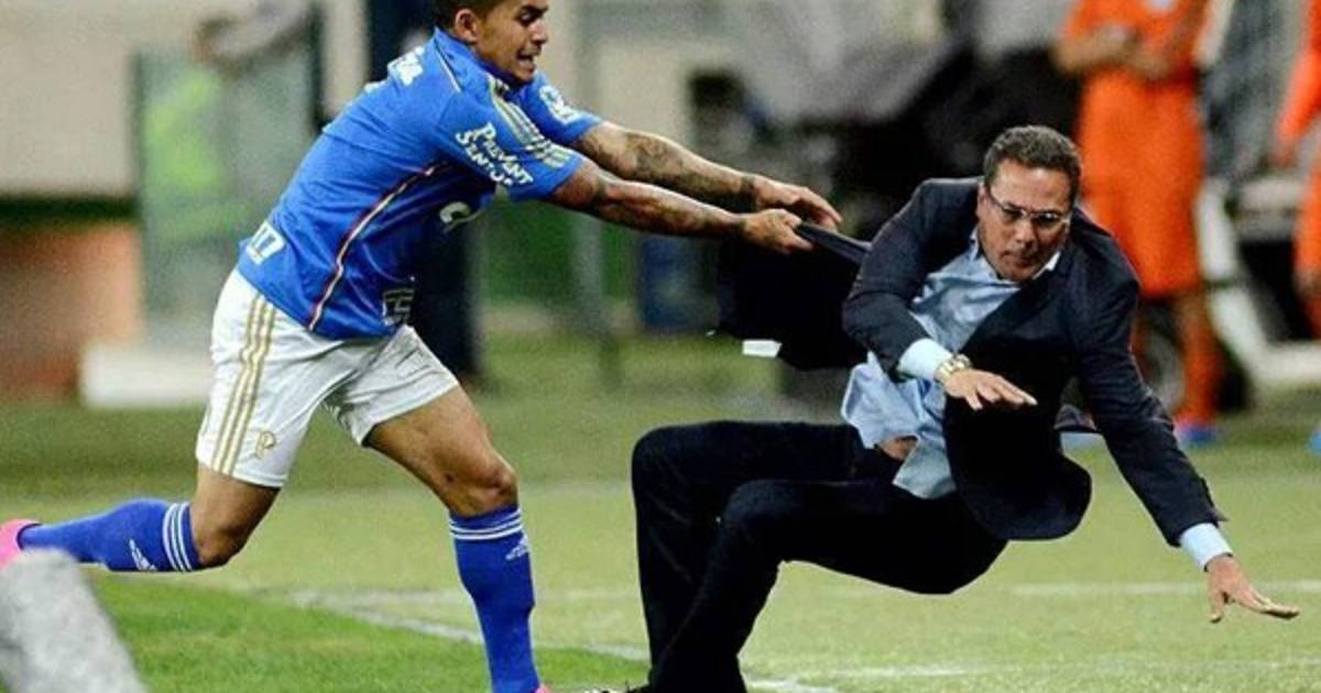 En un duelo entre Palmeiras y Cruzeiro por los Octavos de Final de la Copa Brasil, el jugador de los paulistas Dudu terminó derribando, sin querer, al técnico, Vanderlei Luxemburgo.