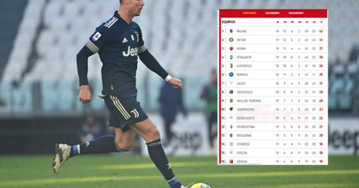 La Juventus, cuarta, se coloca a siete puntos del líder Milan, que perdió el sábado en casa por 3-0 con Atalanta (5º), y a cinco del Inter, que empató (0-0) en campo del Udinese (14º).