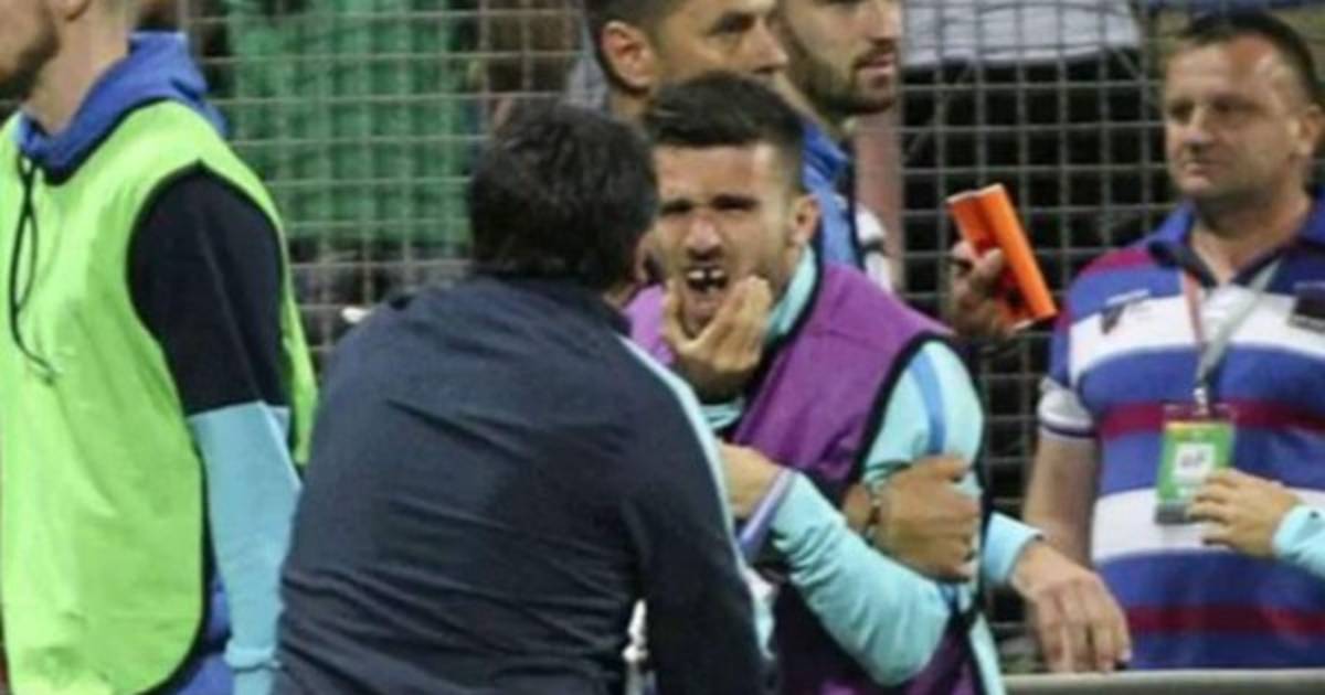 Según lo que se alcanza a ver en el video, el delantero del APOEL Nicosia FC, perdió su dentículo tras recibir un puñetazo de uno de los asistentes del conjunto bosnio.