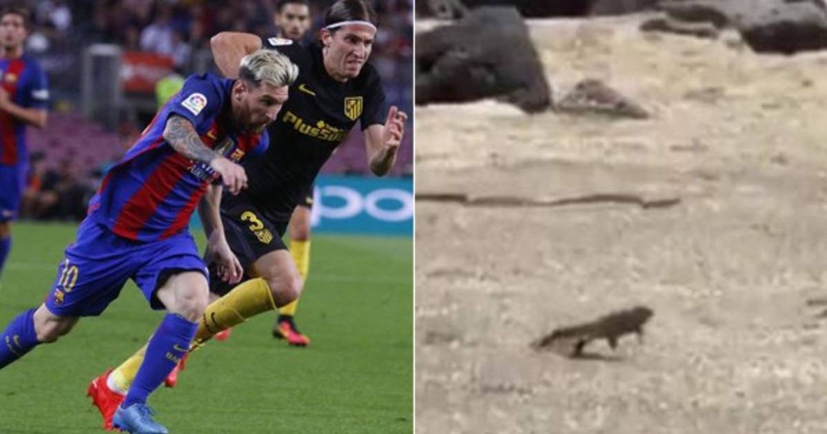 un golazo de Messi y el video lo comparan con una iguana corriendo y evitando el