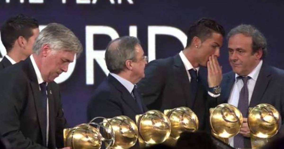 Durante la entrega de los premios 'Globe Soccer' en Dubai, el portugués se le acercó al dirigente francés y le dijo algo al oido a lo que éste le respondió normalmente, antes ya se habían saludado.
