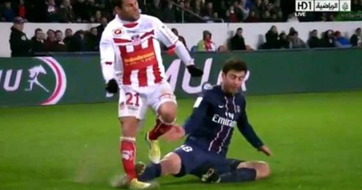 El exjugador del Inter de Milán, Thiago Motta, fue expulsado durante el partido entre el París Saint Germain y el Ajaccio, que terminó con empate sin goles, tras una durísima entrada al tobillo sobre Frédéric Sammaritano.