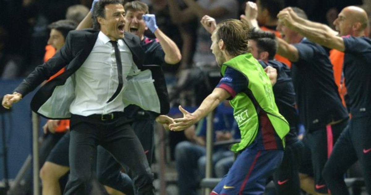 La reacción de Enrique fue épica, ya que corrió toda la banda junto a algunos jugadores y miembros del cuerpo técnico, estallando de júbilo con la diana.