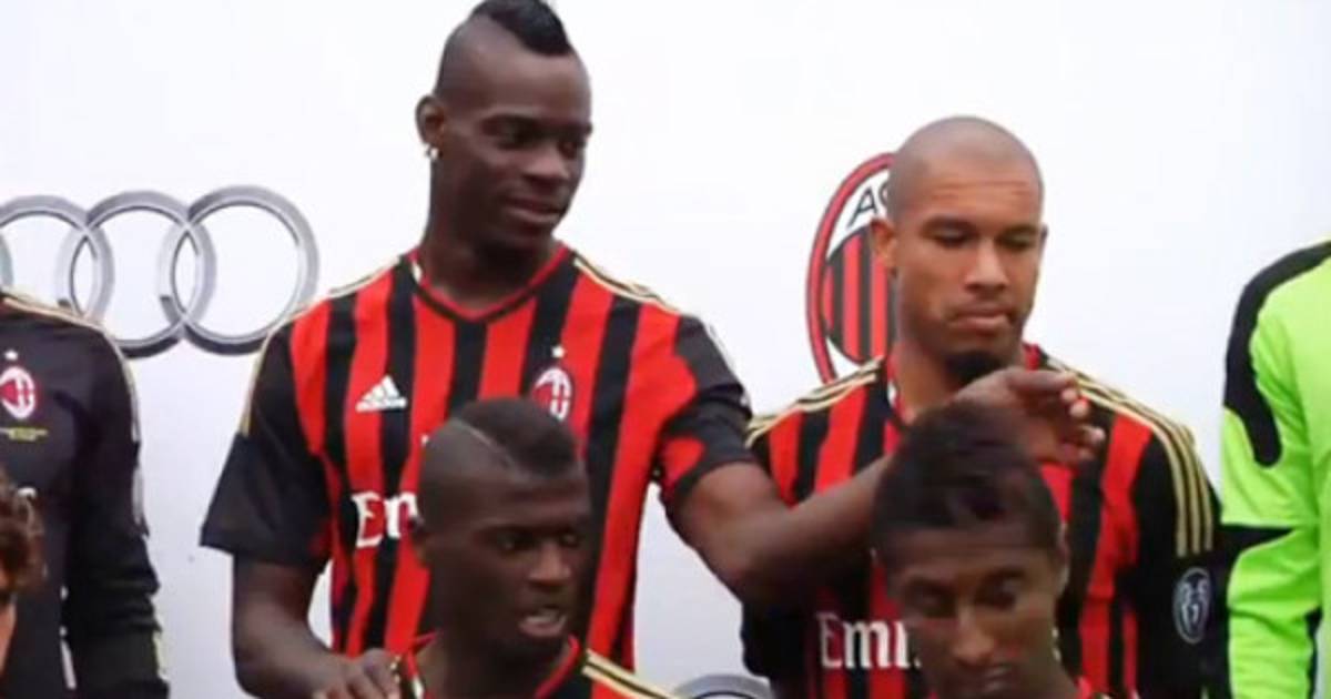 El delantero italiano, Mario Balotelli, no deja de hacer bromas ni en la presentación de la foto oficial del Milan para la presente temporada, donde los jugadores rossoneros mostraron sus mejores peinados.