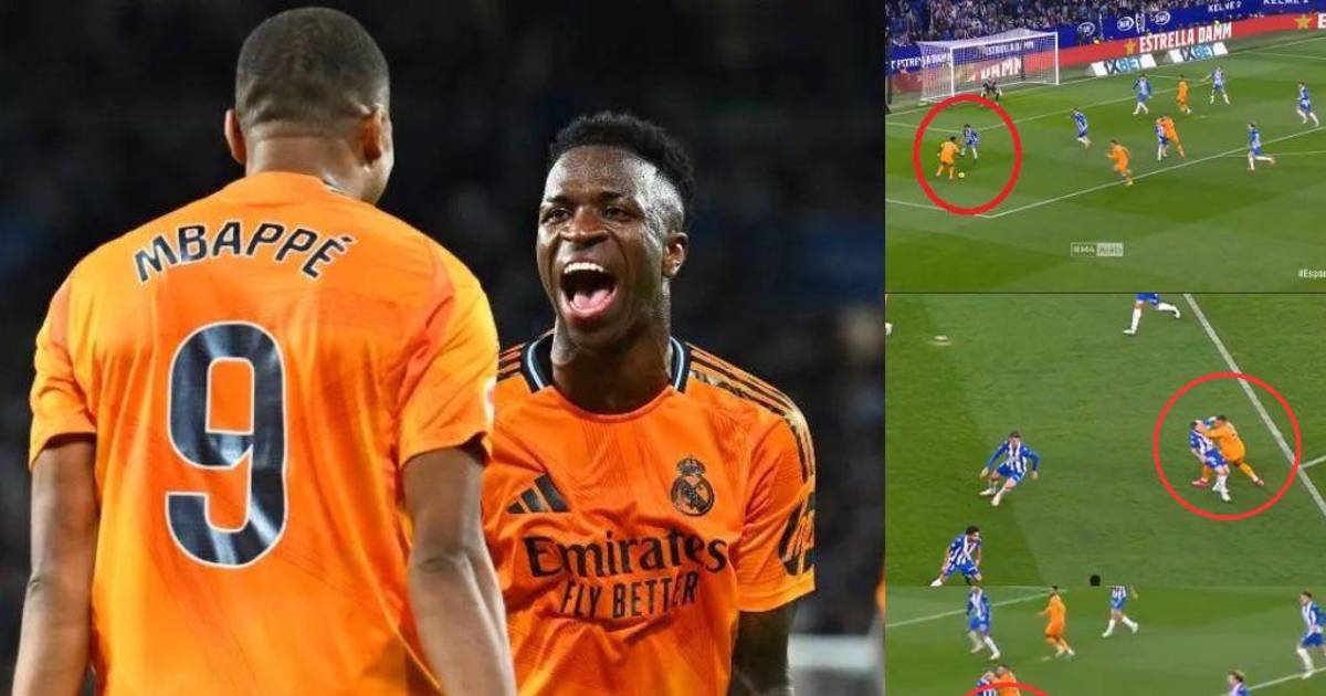 Exactamente en el minuto 20, Vinicius encaró y disparo colocado al segundo palo para poner el 1-0, pero el árbitro central Muñiz Ruiz no quiso que el gol subiera al marcador por falta previa de Mbappé.