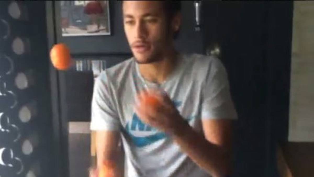 El astro brasileño dejó de lado la rehabilitación con el Barcelona y se puso a hacer malabares para divertir al pequeño.