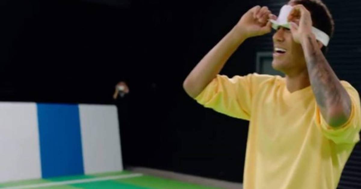 El jugador brasileño acepto el reto de unos de los patrocinadores (Panasonic), quien lo invito a jugar fútbol 5 con los ojos cerrados, donde Ney intentó mostrar habilidades,