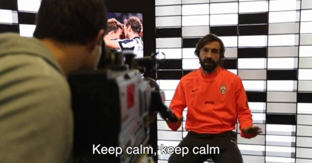 Con el lema 'Keep Calm and pass it to Pirlo' el jugador italiano aparece pidiendo calma a todo el mundo, que confíen en él, y así fue, logrando el golazo del pasado fin de semana que le dio la victoria a los bianconeri contra el Torino.