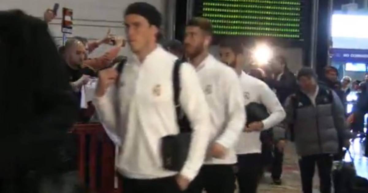 'Cerca de seiscientos hinchas en el aeropuerto y doscientos más a las puertas del Hotel Crowne Fira Palace, recibieron a los jugadores del Real Madrid', informó el diario AS de España junto con este video.