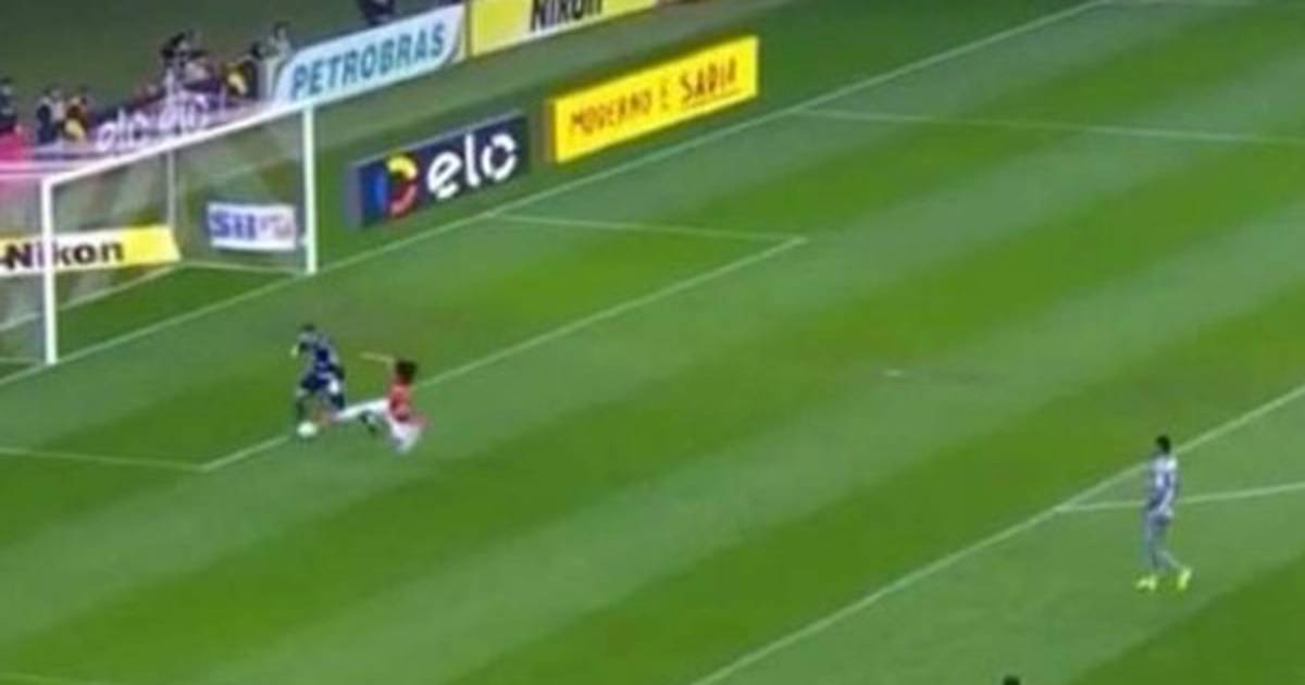 El volante del Inter, fue a presionar al arquero del Palmeiras, pero este al verlo enganchó y lo dejó tirado en la cancha.