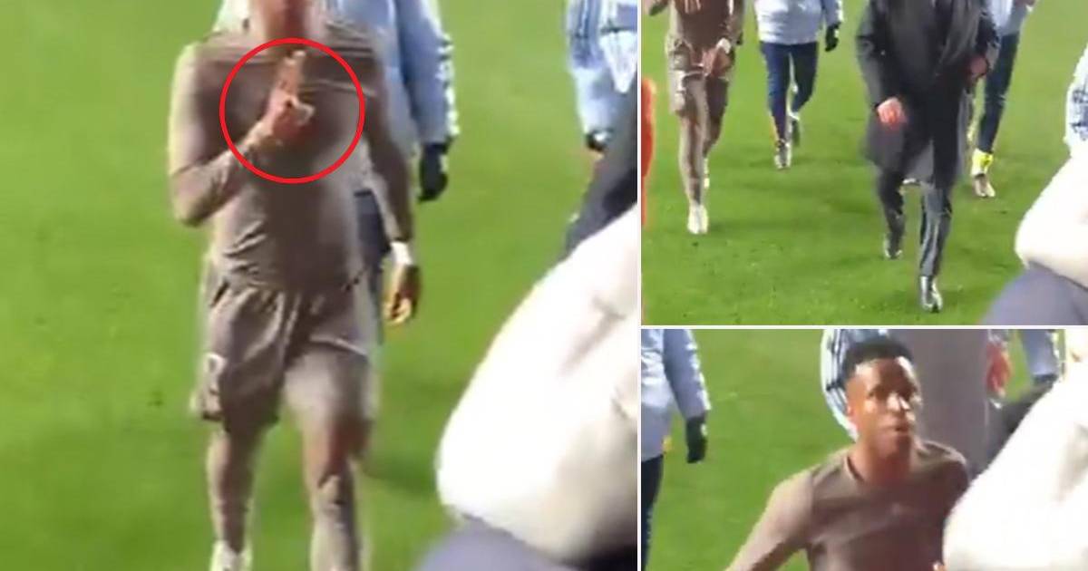 En las redes sociales ya circulan imágenes de lo que sucedió con Vinicius cuando se retiraba al vestuario. El jugador se mostraba visiblemente molesto y se encaró con la afición local.