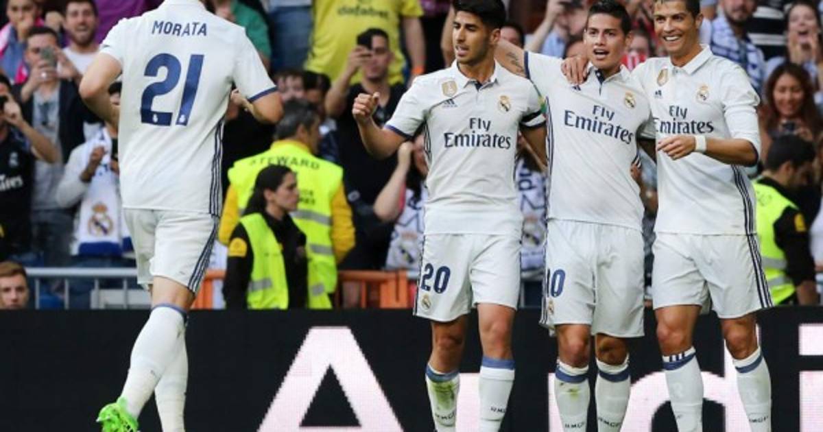 Real Madrid: Keylor Navas, Sergio Ramos, Varane, Nacho, Cristiano Ronaldo, Kroos, James Rodríguez, Kovacic, Asensio, Morata y Danilo.