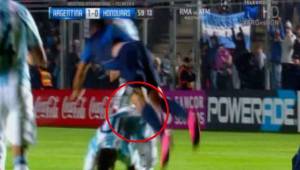 Messi se retiró del campo al minuto 15 luego de recibir de forma accidental un rodilla arriba de la cadera del mediocampista Oliver Morazán.
