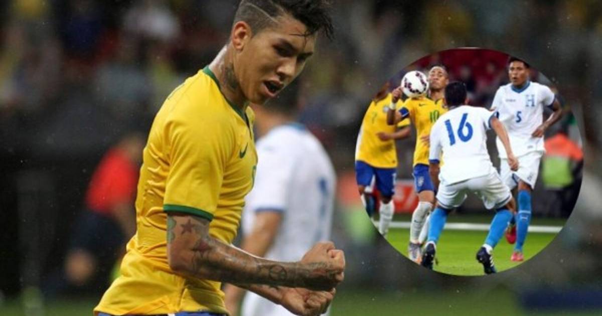 Fue al minuto 33 que Brasil iba a encontrar el único tanto del partido. Filipe Luis comenzó la jugada y se combinó con Coutinho, este habilitó a Firmino, hoy, estrella de Liverpool, y definió por en medio de las piernas de Noel Valladares.