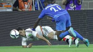 Javier 'Chicharito' Hernández en un choque con Brayan Beckeles y tuvo que ser sustituido al minuto 41 del