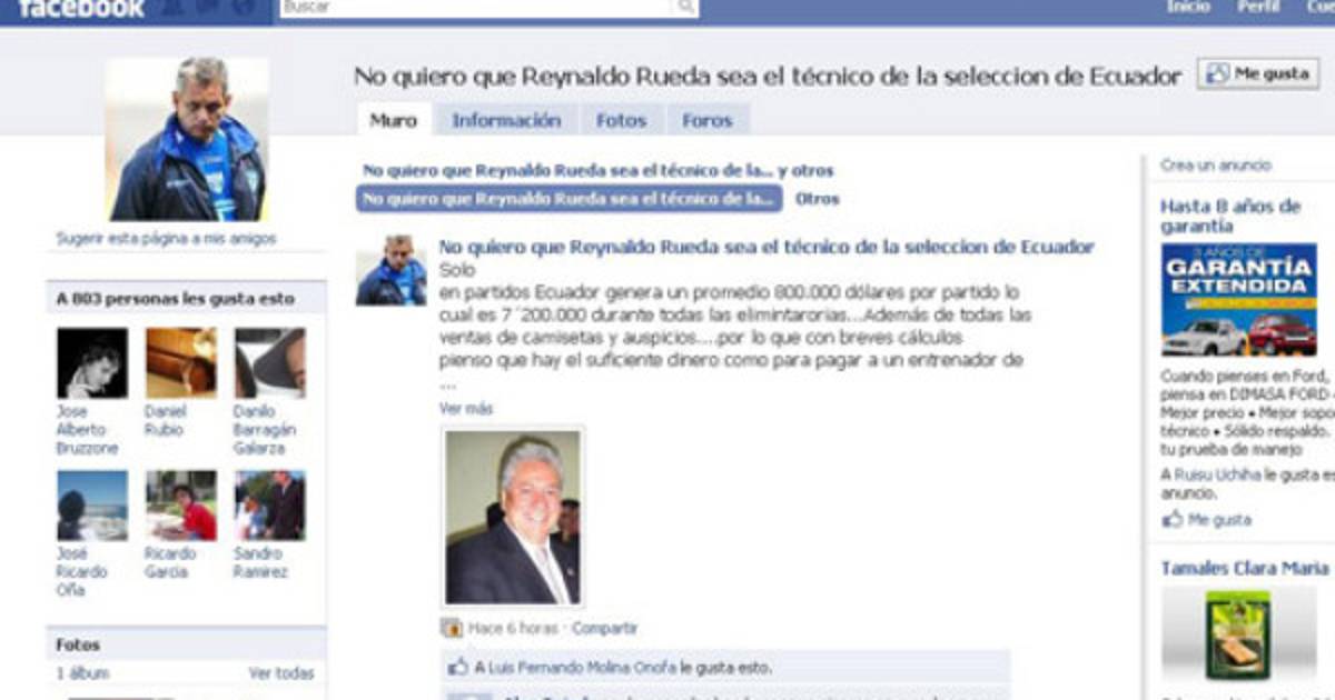 En Facebook crearon la página “No quiero que Reynaldo Rueda sea el técnico de la selección de Ecuador” y comentarios en los diarios digitales El Comercio y Fútbol Ecuador de los aficionados han reflejado el malestar, dejan claro que no quieren al colombiano.