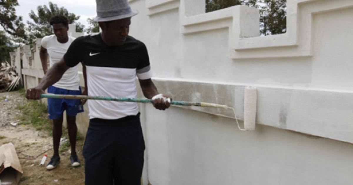 “Buenos días, ¿se encuentra Edgar Álvarez?”, le consultamos a un trabajador frente a un llamativo edificio verde. “Claro, allí está pintando”, nos respondió con una sonrisa.