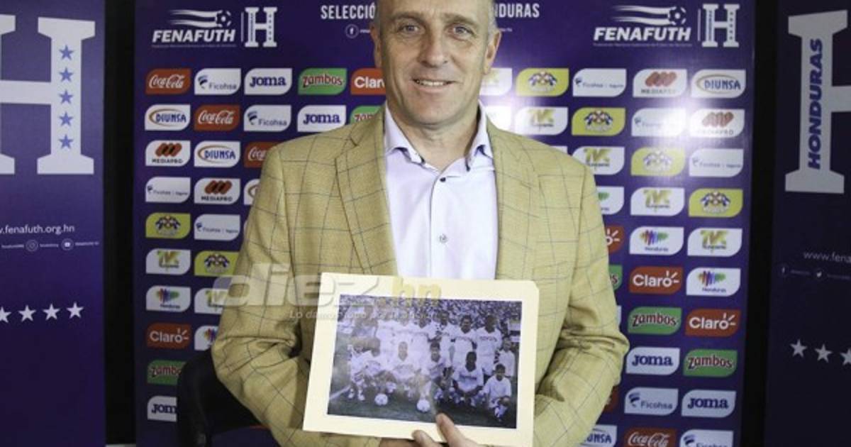 Antes de arrancar las preguntas, sorprendemos al nuevo técnico de la Bicolor hondureña, mostrándole una fotografía sacada del baúl. Es una imagen del Olimpia 94-95, en el que él era titular indiscutible.