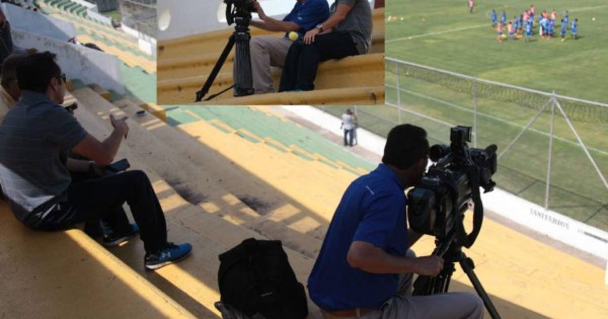César Martínez y su compañero camarógrafo no se pierden detalle del entrenamiento de Honduras en Comayagua. FOTO: Juan Salgado