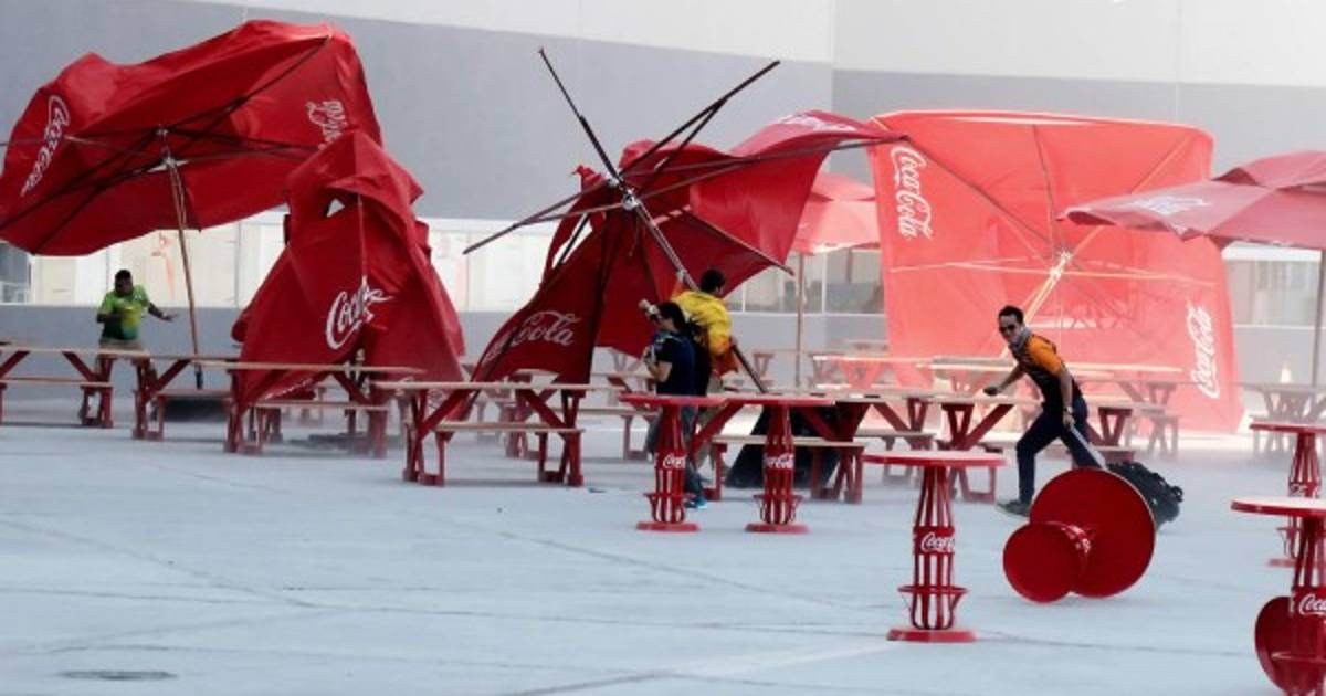Además se han caído muchas mesas y sombrillas que tienen instaladas para que los fans se ubiquen mientras esperan el arranque de los juegos.