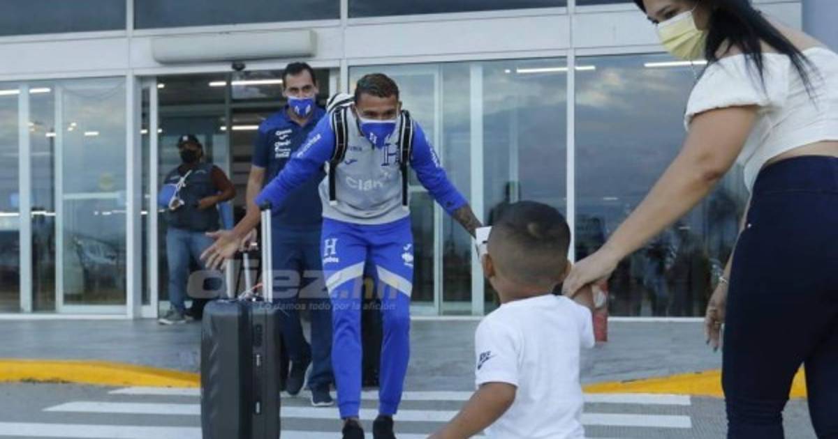 Al llegar este día al Aeropuerto Internacional Ramón Villeda Morales, el joven futbolista de Marathón fue recibido por sus familiares, en especial su hijo, quien le dejó palabras especiales.