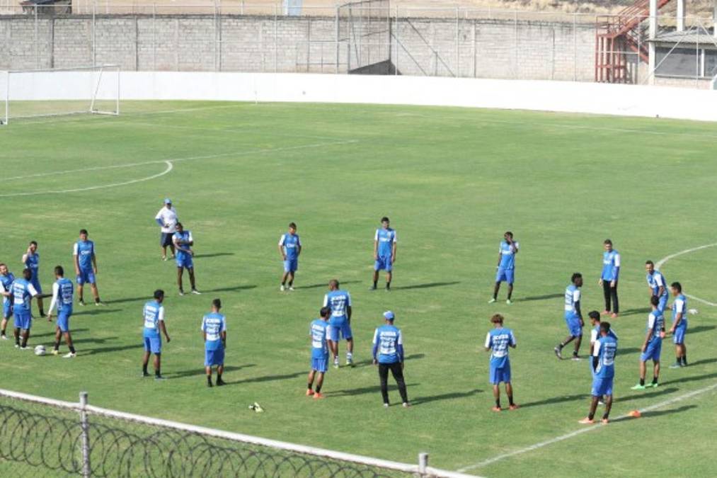 El grupo de jugadores en pleno entrenamiento en el estadio Carlos Miranda de Comayagua.
