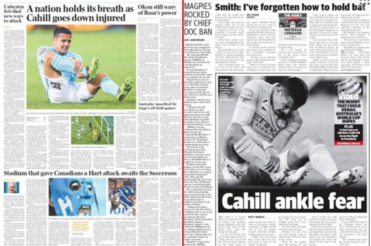Los medios de Australia ocuparon todos sus espacios con la lesión de Cahill.