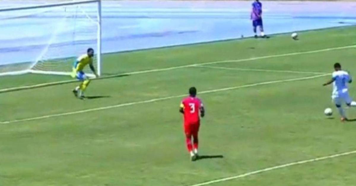 El atacante de la Bicolor remató de primera y el portero Deshawn Whittaker se quedó con el remate del catracho.