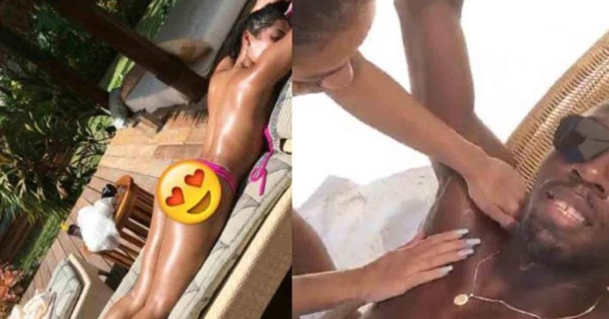 En la otra es un retrato de la chica tomando el sol en ‘topless’ y mostrando los glúteos, tapados por el velocista jamaicano con un ‘emoji’.