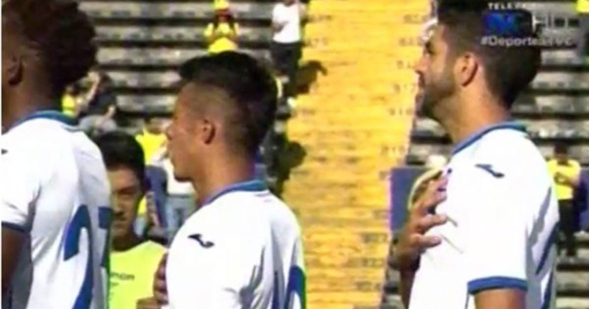 Los jugadores quedaron sorprendidos mientras cantaban y finalmente se dieron vuelta para darle paso al himno ecuatoriano.