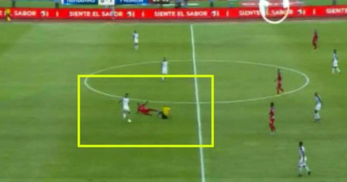 En medio del partido en el Olímpico entre Honduras y Panamá sucedió una de esas jugadas cómicas con el árbitro cubano Yadiel Martínez.