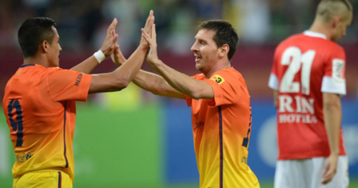 El Barcelona abrió el marcador en Rumanía a los cuatro minutos, cuando Messi se hizo con un balón previamente robado por Alexis y, con un fuerte disparo dentro del área, batió al meta local (0-1).