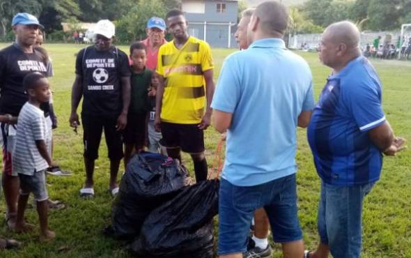 Este sábado, el centrocampista, dos veces mundialistas con Honduras (2010-2014) arribó a la comunidad garífuna de Sambo Creek, La Ceiba Atlántida, con varias bolsas llenas de obsequios.