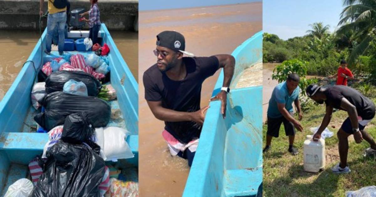 Aunque las aguas ya bajaron, el futbolista sigue colaborando y llevando alimentos a las zonas de Puerto Cortés donde solo se puede entrar en lancha.
