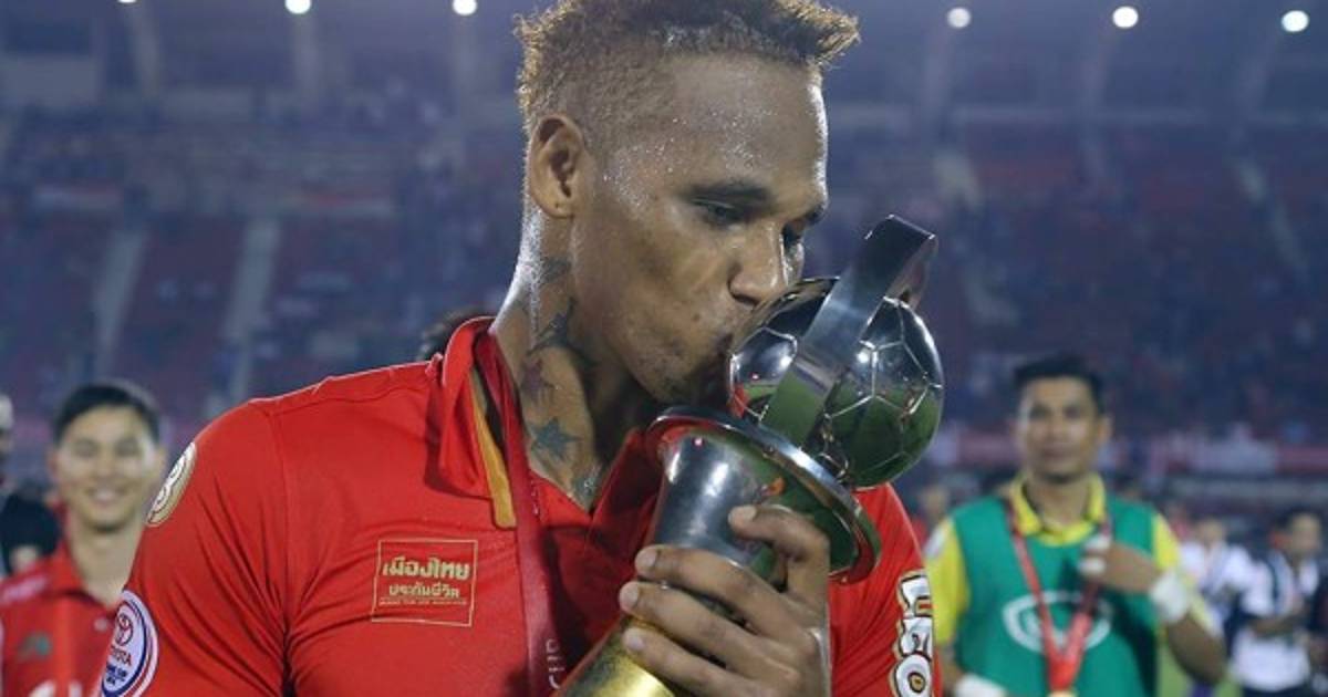 Georgie Welcome ya se ganó el cariño de la afición del Bec Tero Sasana, este domingo marcó y levantó el título de Campeón de Copa. Foto @BecTeroSasanaFC