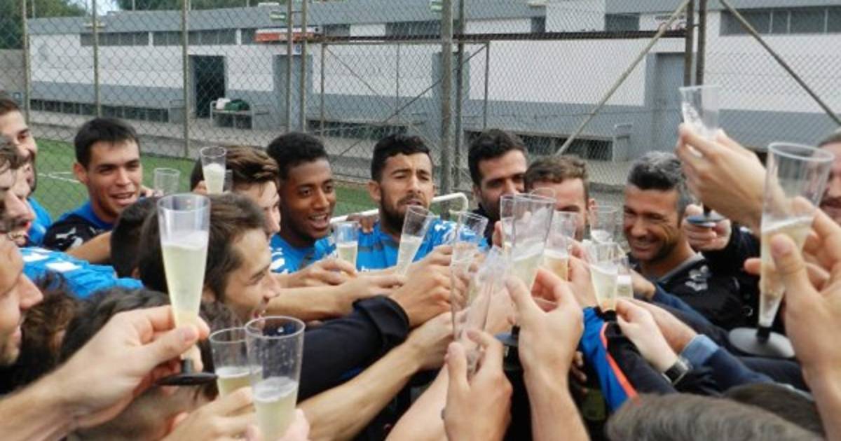 Al finalizar la misma, cuerpo técnico, jugadores y auxiliares de la primera plantilla tinerfeñista realizaron el brindis por el nuevo año.