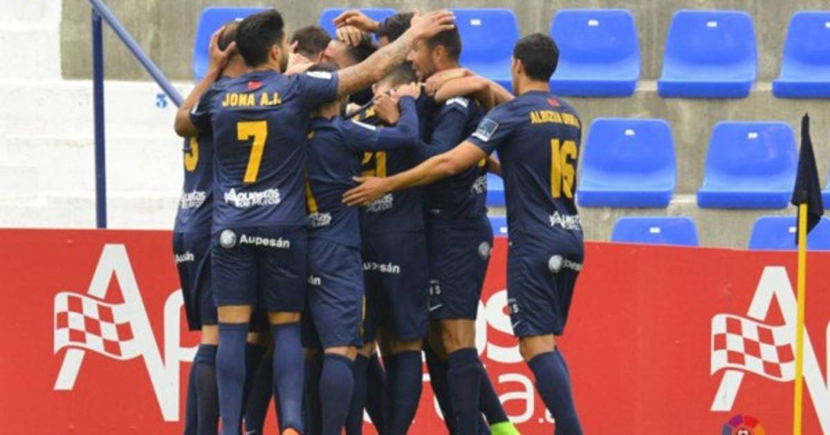 Tito celebra el gol hecho ante el Tenerife y la cara de Gaku lo dice todo. Foto cortesía La Liga 123.