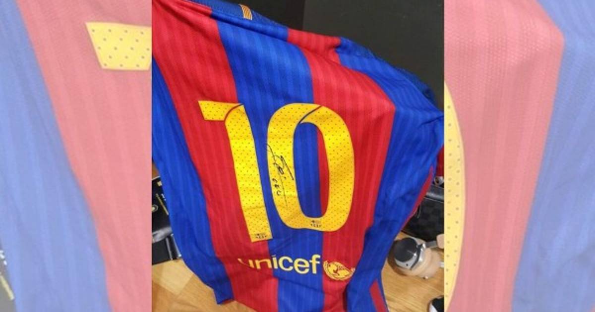 La esposa de Emilio, Virginia Varela, subió la imagen a redes sociales exhibiendo el bonito obsequio del crack del Barcelona. 'Gracias Leo', escribió mostrando el dorsal 10 con la firma de Messi.