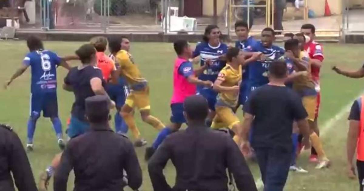 Tras el pitazo final, hubo un forcejeo entre jugadores de ambas escuadras que desató una batalla campal sobre la grama del Complejo Deportivo Tierra de Fuego.