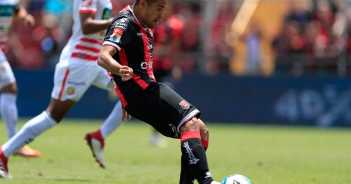 el triunfo 6-1 del Alajuelense sobre el Herediano en el Morera Soto. El atacante catracho reaccionó feliz.