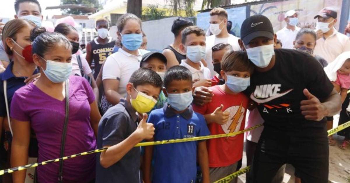 Me motivó venir aquí por la situación que sufrió La Lima por los huracanes. Regalamos una parte de uniformes que el Montreal me dio, ellos lo lamentaron mucho igual que mi persona, sabemos que fue algo duro por lo que me apoyaron dándome esta ropa de club que los niños la recibirán de buena manera.