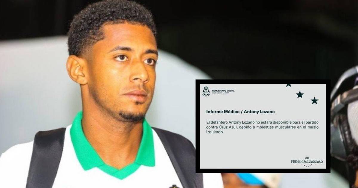 ”El delantero Antony Lozano no estará disponible para el partido ante Cruz Azul, debido a molestias musculares en el muslo izquierdo”, dice el comunicado del Santos Laguna.