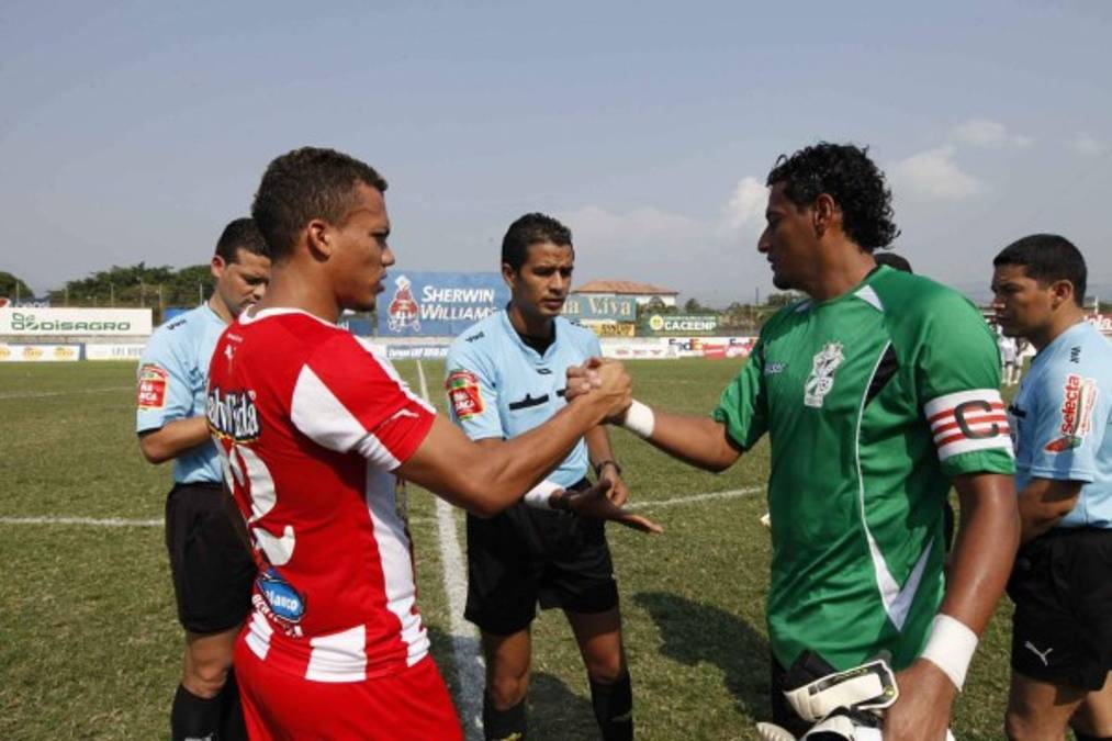 Adalid Puerto como capitán del Platense cuando fue futbolista del equipo en Liga Nacional. Aquí con el finado Arnold Peralta del Vida.