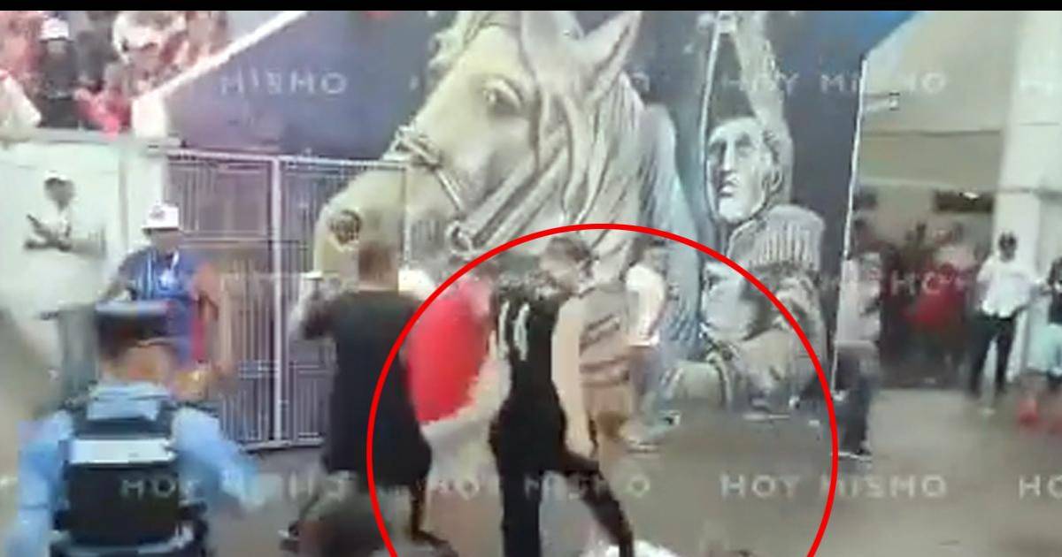 Un grupo de aficionados se ensañaron con un muchacho que portaba una calzoneta color jeans y camiseta blanca. En el momento que el hombre está forcejeando con otro aficionado de frente, aparece por atrás otro y le da un golpe en la cabeza que lo noqueó.