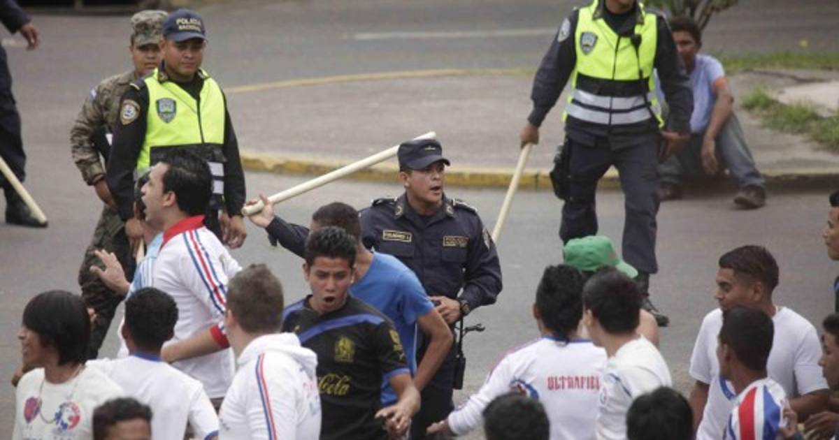 La Policía Nacional actuó y controló lo ocurrido, escoltó a ambas barras a los lugares que les corresponder previo al duelo que comienza a las 5:30pm.