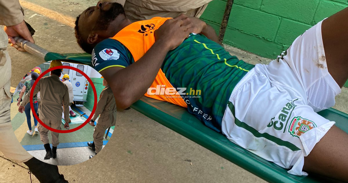 Segundos después el futbolista tuvo que ser retirado en camilla hacia los camerinos del Yankel Rosenthal. El cuerpo de bomberos trasladó al jugador hasta la zona de seguridad.
