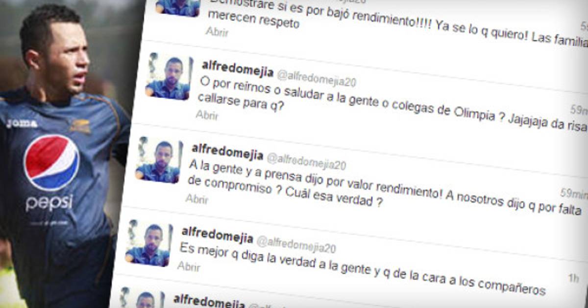 El mediocampista Alfredo Mejía ha roto el silencio y ha decidido hacerlo mediante su cuenta de Twitter en la que explota contra el técnico del Motagua, Risto Vidakovic, por haberlo retirado del equipo de Primera División.