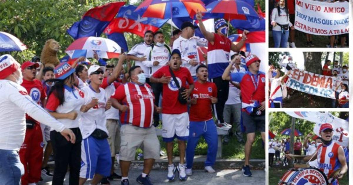 La barra del Olimpia llegó a mostrarle su apoyo a los jugadores con cánticos al ritmo de tambores previo al duelo contra Real España.