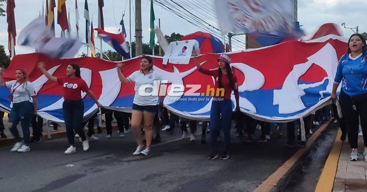 Los aficionados blancos, una hora antes del inicio del choque ante “La Manada”, hicieron el respectivo banderazo en el bulevar que conduce al Estadio Francisco Morazán de San Pedro Sula.